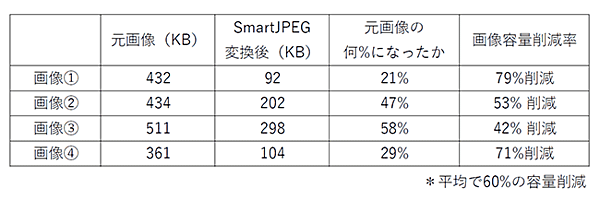実際には以下の表のとおり、画像サイズの容量が削減されている。