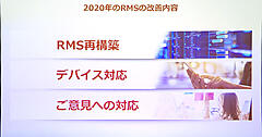 店舗がより効率的に運営を行えるよう、「One Platform」というコンセプトの下、店舗運営システム「RMS」に新機能を2020年秋頃にリリースする。機能はメールや情報の集約化、カテゴリごとに情報の整理、情報の優先度付け、案件のToDo管理が行えるようにする。