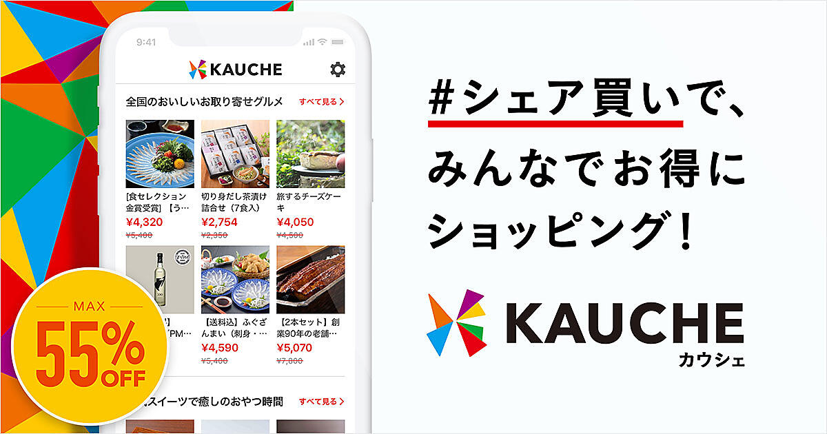 「カウシェ」は友人や家族間で「この商品が良い」「一緒に買おう」などのコミュニケーションをオンラインで行いながら、共同購入すると割引価格で商品を手に入れることができるショッピングアプリ。