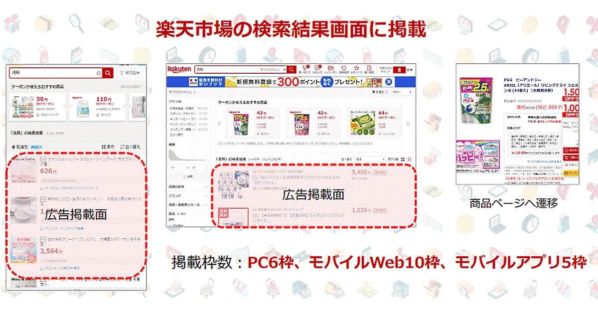 楽天は「楽天市場」の商品検索結果画面に運用型広告を配信できるメーカー向け広告プロダクト「RMP-Sales Expansion」の提供を、9月15日に始めた。