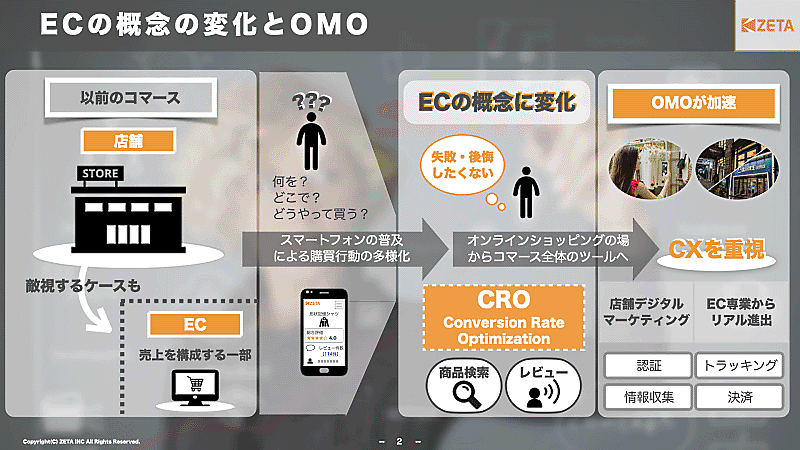 今回、山崎社長が説明したコマースの変化に対応し、重要視されるカスタマーエクスペリエンスの向上を実現するのが、ZETAが提供するOMO・ DXソリューション「ZETA CLICK」だ。