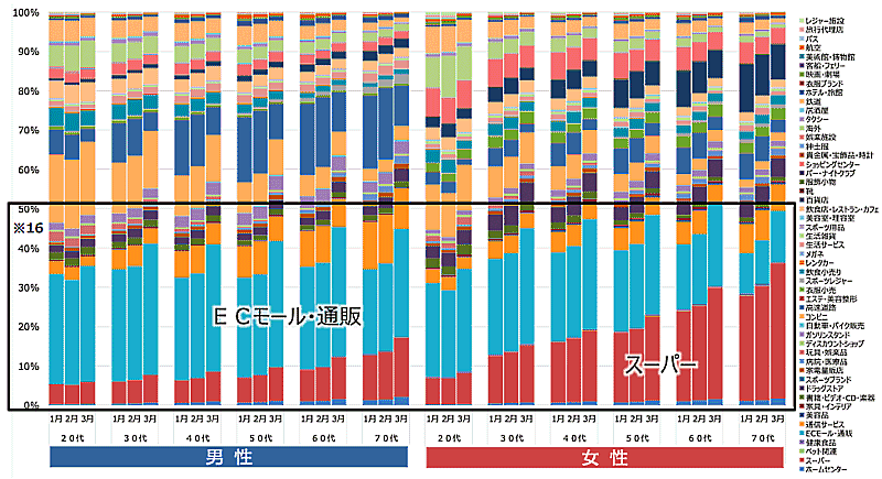 三井住友カードと顧客時間が共同分析した調査結果によると、多くの業種で決済件数・金額が減少していく中、取引が増加している業種では日常生活の変容による「スーパー」「ECモール・通販」を利用する「巣ごもり消費」が顕在化。社会情勢の変化に伴う買い物の質の変化、高年齢層のEC利用への「デジタルシフト」の兆候など、消費行動の変化が垣間見えている。