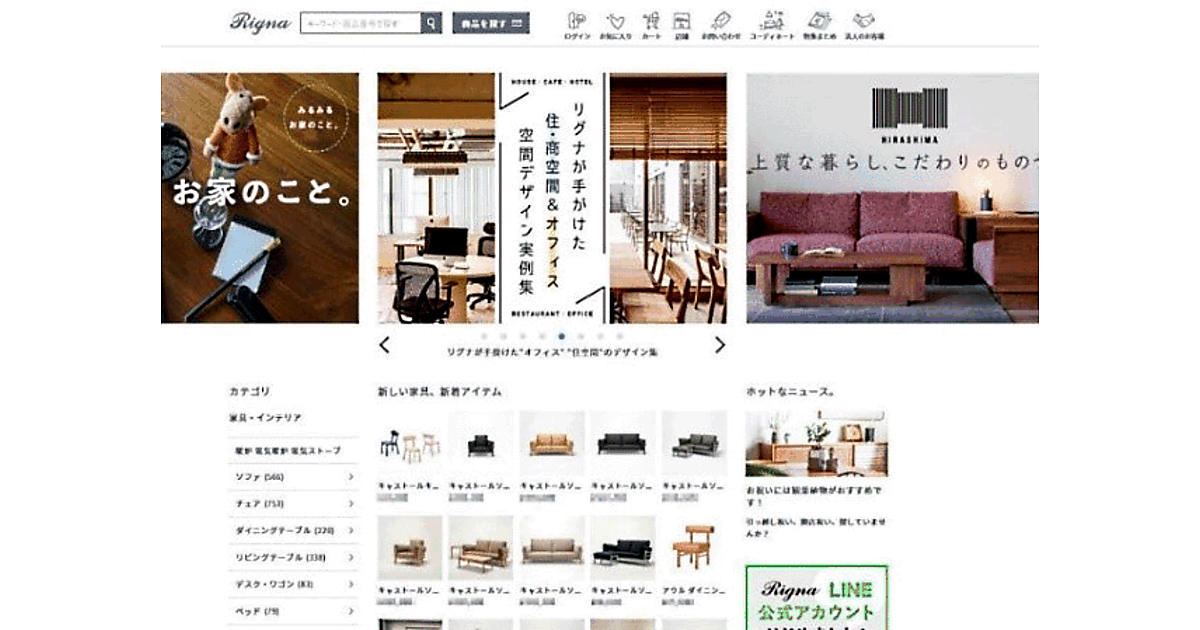 リグナは、家具・インテリアのECサイト・自社店舗を通じた販売事業、オリジナル商品開発事業などを手がけている。設立は2003年。ドラマ・映画への商品提供などで、ECサイト名・ブランド名である「Rigna(リグナ)」は高い知名度を有しているという。ECサイトでは国内外約180ブランド、5000点以上の家具を販売している。
