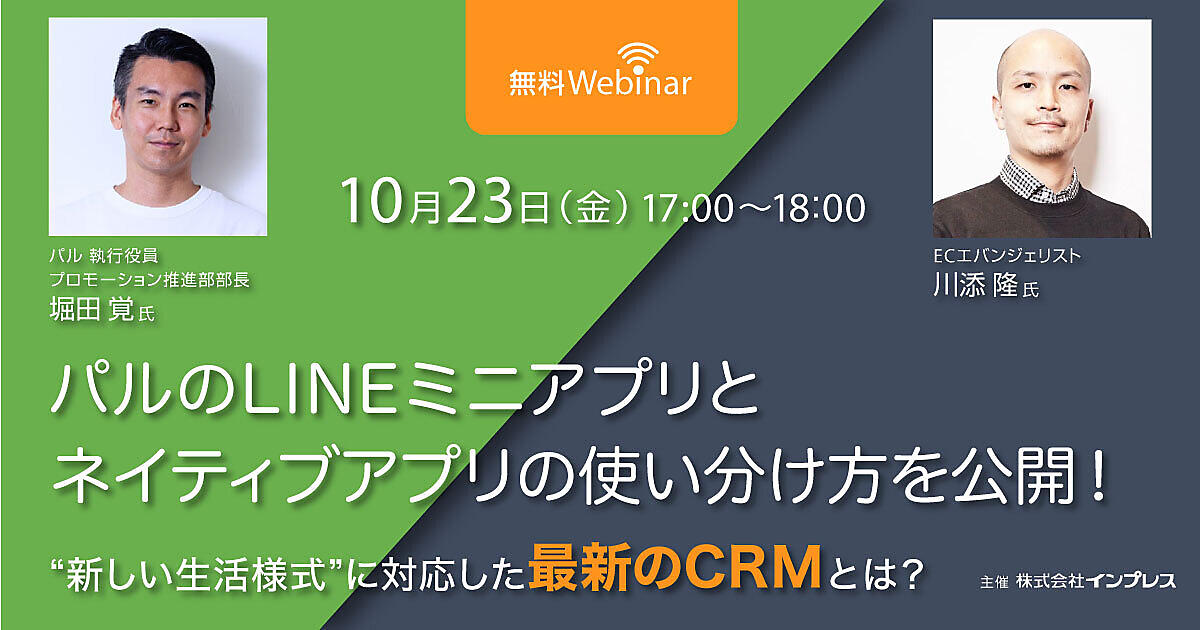 コロナ禍における「新しい生活様式」に対応した、パルの”最新のCRM”実践例を解説する無料ウェビナーを、10/23(金)17時〜開催します。他では聞くことができない希少事例を、ファッションECに詳しい川添隆氏ならではの視点で深掘りします。
