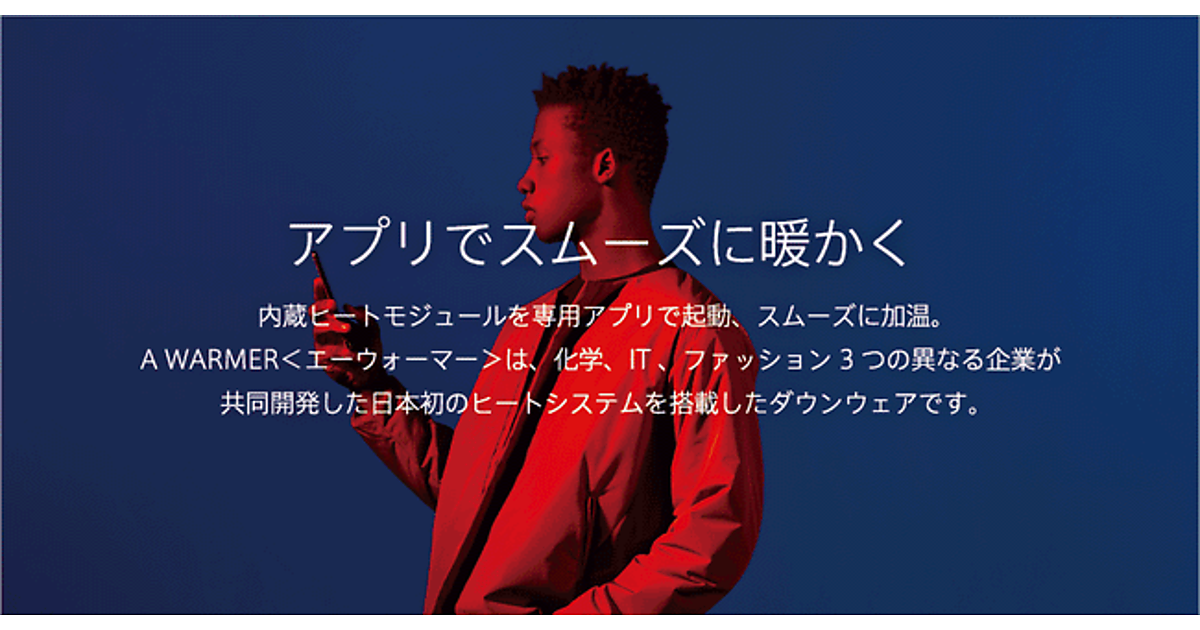 アダストリアが10月9日から販売を始めた、日本初の取り外し可能な衣類用加熱技術搭載のウェアラブル衣料「A WARMER(エーウォーマー)」。