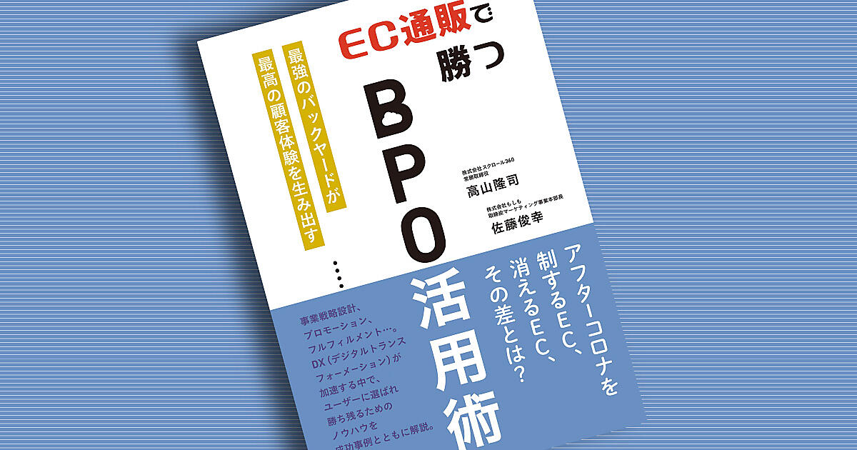スクロール360の高山隆司さんと、もしもの佐藤俊幸さんの共著『EC通販で勝つBPO活用術 ─最強のバックヤードが最高の顧客体験を生み出す』が10月21日、ダイヤモンド社より発売されました。