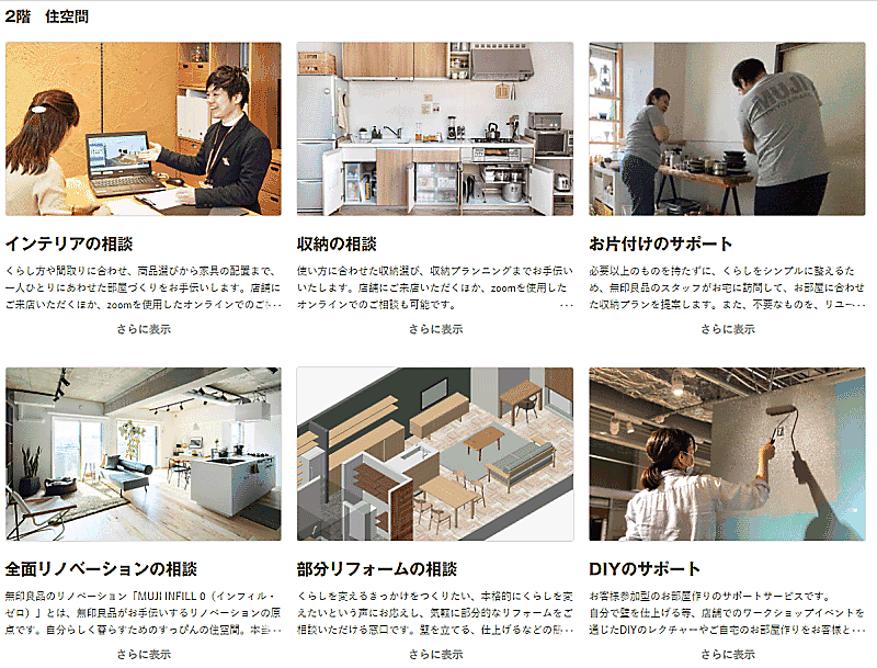 「家」「オフィス」「商業施設」「公共」の4分野において、企画から考える空間づくりのサービスを始める。店舗に設置する法人カウンターで展開。オンラインも活用し全国からの相談に対応する。無印良品やIDEEのコンテンツをベースにした場の活用を目的とする空間企画といったプランを紹介していく。