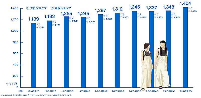 「ZOZOTOWN」の出店ショップ数は、前期末比5.0%増の1404店舗となった。