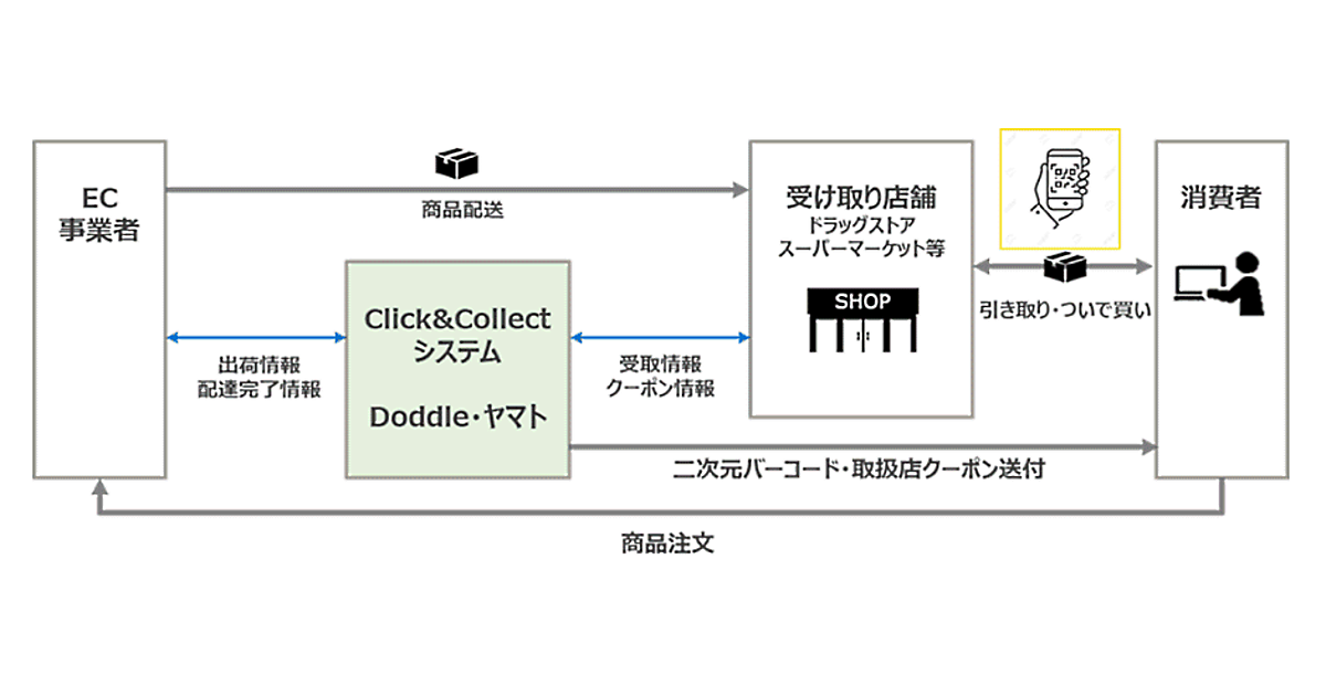 ヤマトHDとドドル社は2020年3月、デジタル化した新たな受け取りサービスの提供で合意し、8月からEC商品の受け取り拠点となる店舗の募集を開始した。