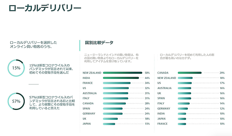 また、2020年1月から9月までの期間、オンラインで買い物した人のうち、「配送」を選択した買い物客と比較した場合の平均値は次のようになっている。
