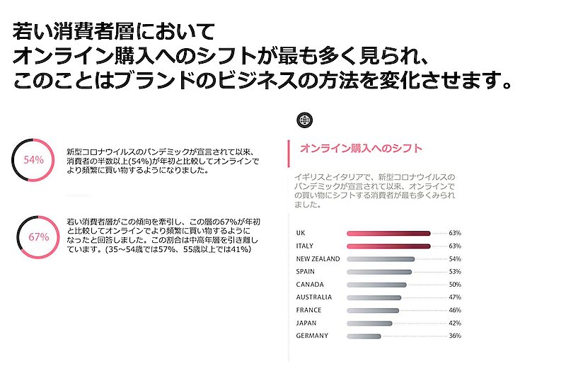 年次レポートでは、コロナ禍におけるグローバル全体での消費行動の変化を次のように紹介している。