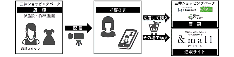 三井ショッピングパーク初となる「ライブコマース」を、12月14日から計6施設・約25店舗で配信をスタート。「ライブコマース」動画内で“欲しい”と思った商品は、ライブ動画内のリンクから「&mall」にアクセスして購入できる。