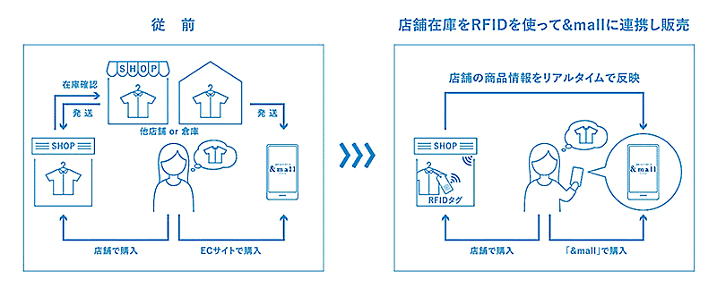 RFID(Radio Frequency Identification)活用による店舗在庫商品の「&mall」でのオムニチャネル販売にも対応している。