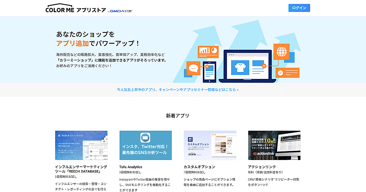 GMOペパボの月額制ネットショップ作成サービス「カラーミーショップ」が提供している、集客強化や客単価アップなどに役立つ機能をアプリで追加できる「カラーミーショップ アプリストア」について、2019年5月の提供開始から約1年半で総インストール数が1万件を超えた。