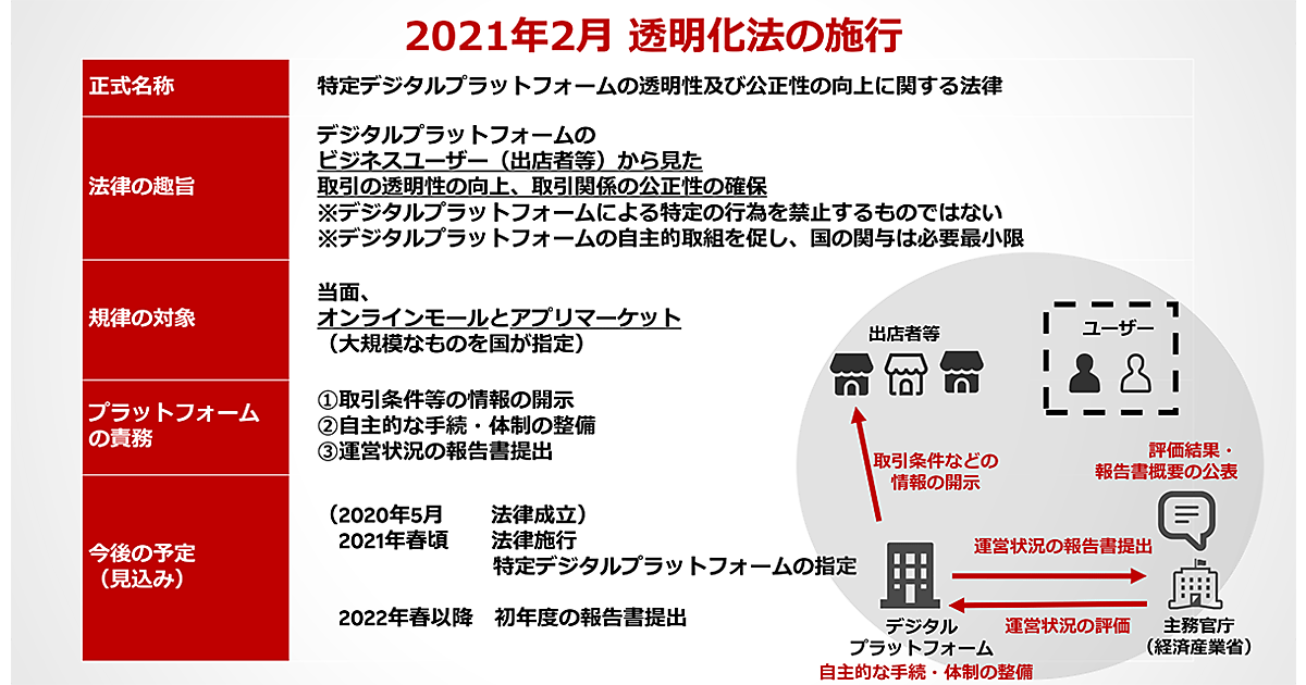 2021年2月1日付けで野原氏の直下に「コマース渉外室」を新設。理由について野原氏は「透明化法を見据え、行政とより円滑なコミュニケーションを行い、行政からの要請などに迅速に対応できるよう、社内の体制整備を作るため」と説明した。