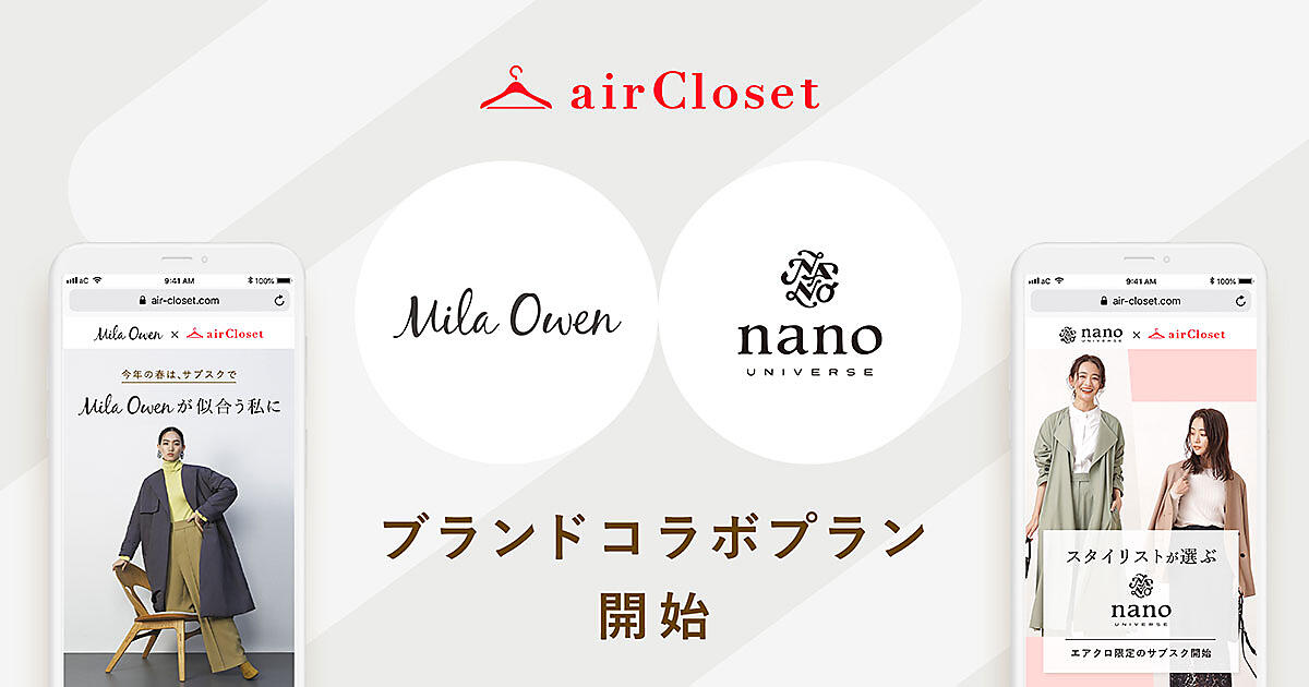 月額制ファッションレンタルサービス「airCloset(エアークローゼット)」は、単独ブランドの洋服をレンタルできる新サービス「ブランドコラボプラン」の事前受付を、2021年2月1日から開始した。