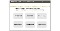 ギフトとして選びやすい商品の見せ方、届け先の複数選択、熨斗(のし)設定、オリジナルショッピングバッグ同梱、定型文のメッセージカード同梱といった点を刷新。ECサイトのリニューアルにはecbeingが提供するECサイト構築パッケージ「ecbeing」を採用、導入した。