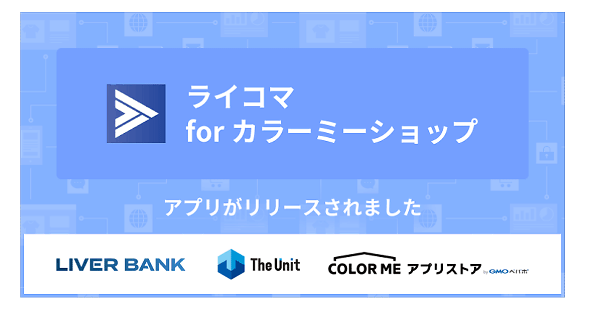 The UnitとLiver Bankが共同で提供するライブコマースパッケージ「ライコマ」を「カラーミーショップ」利用店舗向けに提供するアプリ。