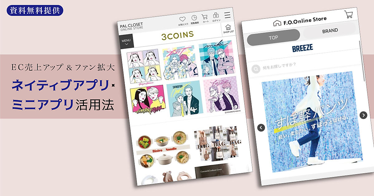 「3COINS」のパルグループ、子供服「BREEZE」のF・O・インターナショナルによるスマホアプリ活用例+アプリ開発・マーケ活用を支援する2社のサービス解説をまとめたホワイトペーパーを無料提供