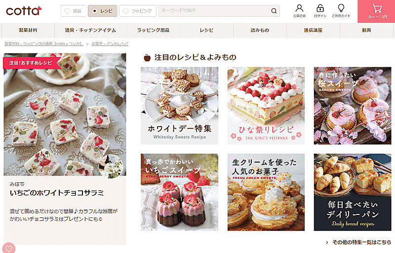 「cotta」は菓子・パン作りの材料や道具のネット通販、菓子やパンのレシピコンテンツを展開する日本最大級のECサイトである。月間アクセス数は約2900万PV(2020年2月時点)、会員数は119万人(2020年9月時点の個人、法人、モール、ゲスト会員の合計会員数)、SNSフォロワーは87万人(Facebook、Instagram、Twitter、LINE、Pinterest、YouTubeのフォロワー数の合計)にのぼる。
