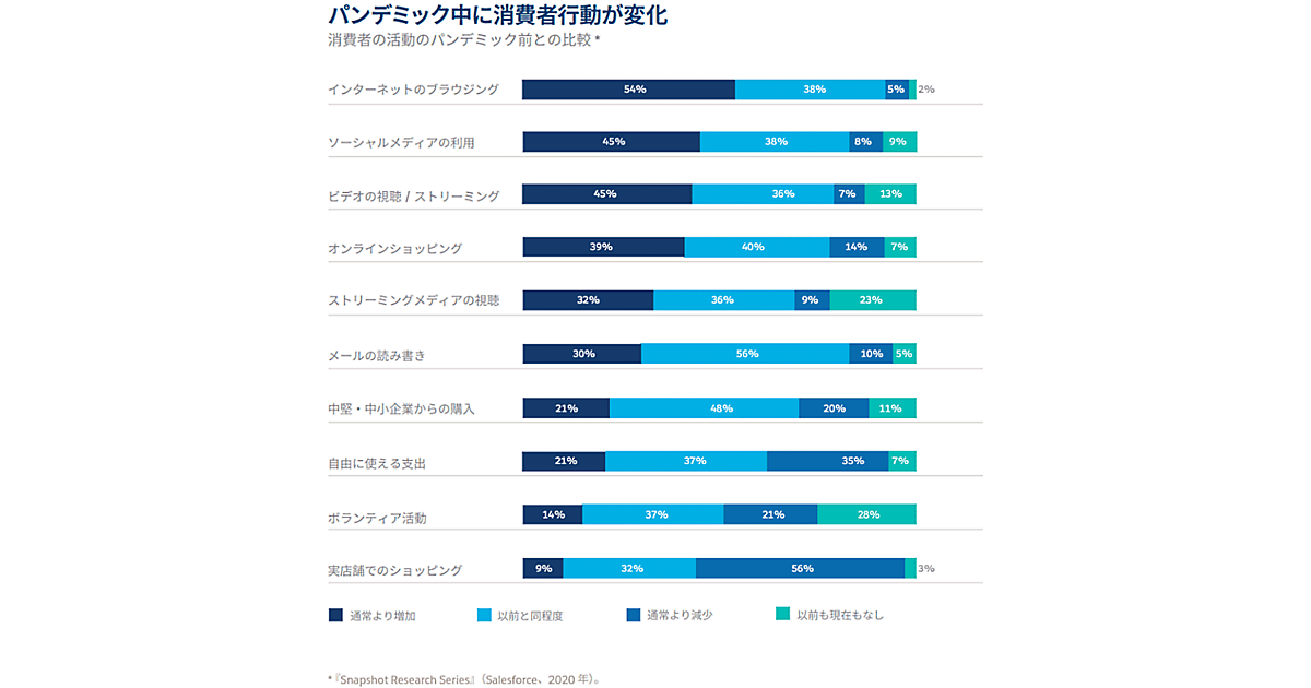 セールスフォース・ドットコムが3月16日に発表したEコマース年次調査レポート「Eコマース最新事情」(第1版)の日本語翻訳版では、消費行動の世界的なデジタル移行の現状をまとめている。