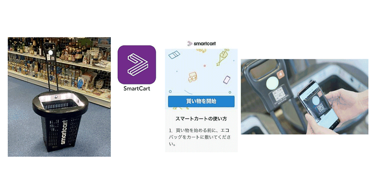 実証実験は大阪市の阪急オアシス中之島店で実施する。顧客が所有するスマホに専用アプリをダウンロードしてもらい、画像認識装置がついたカートとペアリングして利用を促す。