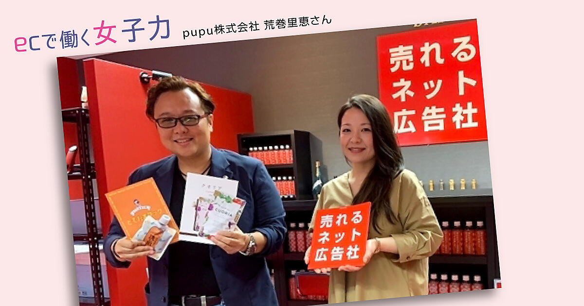 売れるネット広告社の代表取締役社長CEOの加藤公一レオがEC業界で活躍する女性にフォーカスし、ネット通販(EC)に携わる経営者や担当者とさまざまなテーマについて対談する企画。10回目はpupu株式会社 荒巻里恵さんの登場です。