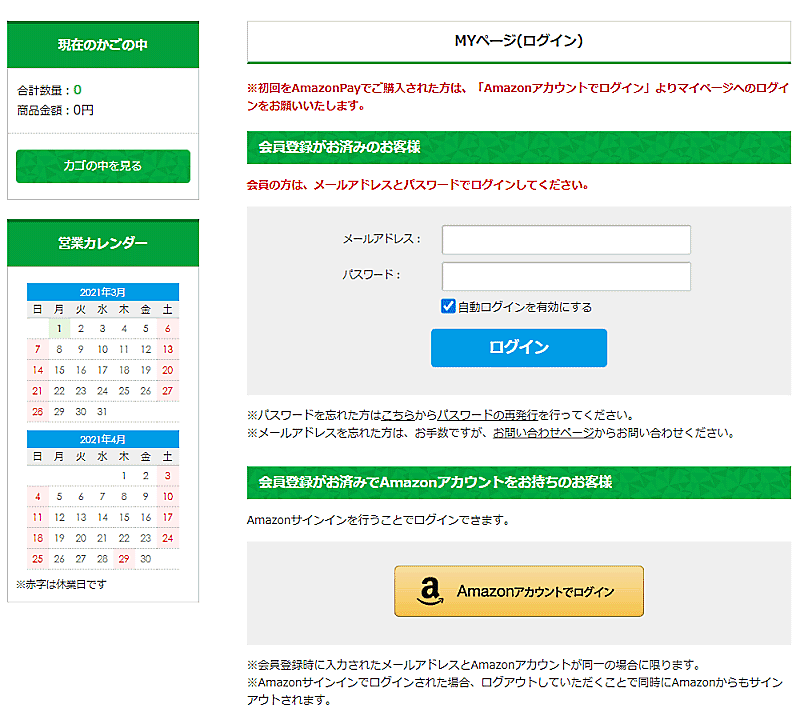 「Amazon Pay」の導入で、マイページで「Amazonアカウント」でのログインが可能に