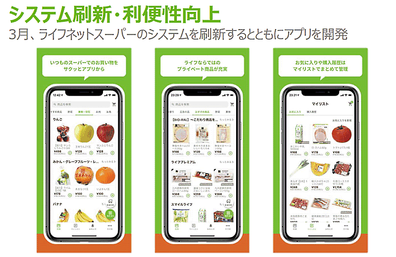 ネットスーパー事業の拡大には、「システム」「オペレーション」「配送」のそれぞれが高いレベルで実現される必要がある。2021年4月には、間口ホールディングス(HD)グループのスリーエスコーポレーション・間口ロジ関東と、ネットスーパー・来店宅配サービスにおける高い品質の配送網を構築を目的に、新会社「株式会社ライフホームデリバリー」を設立。
