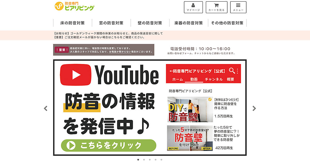 「ピアリビング」は防音専門のEC通販サイトだ。楽天市場、Yahoo!ショッピング、Amazonなどのモールに出店しているほか、電話での注文対応や楽器メーカー向けの卸も行っている。