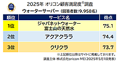 第三者の立場で顧客満足度調査を実施するoricon ME(オリコン エムイー)は5月6日、「ウォーターサーバー」に関する満足度調査結果「オリコン顧客満足度」を発表し、ジャパネットグループのジャパネットウォーターが販売する「ジャパネットウォーター 富士山の天然水」が初の総合1位となった。