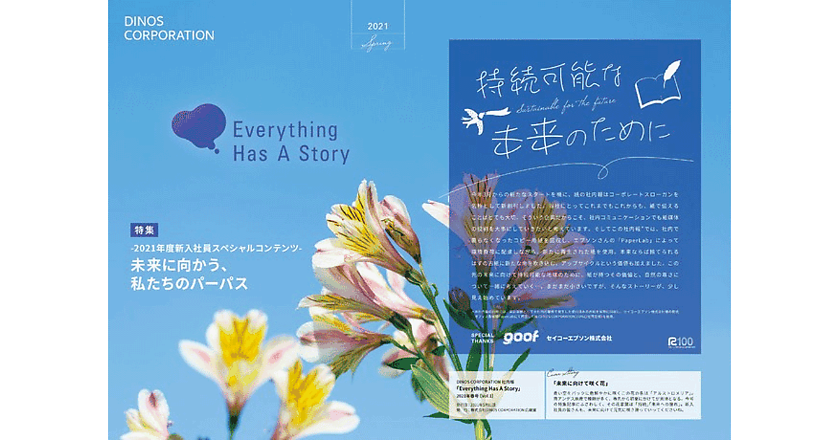 DINOS CORPORATION(ディノス コーポレーション)は今年度、社内業務で排出されるコピー用紙など古紙を回収し、セイコーエプソンの製品である乾式オフィス製紙機「PaperLab」で再生したR100(古紙パルプ配合率100%)自社再生紙による紙媒体の社内報を発行する。