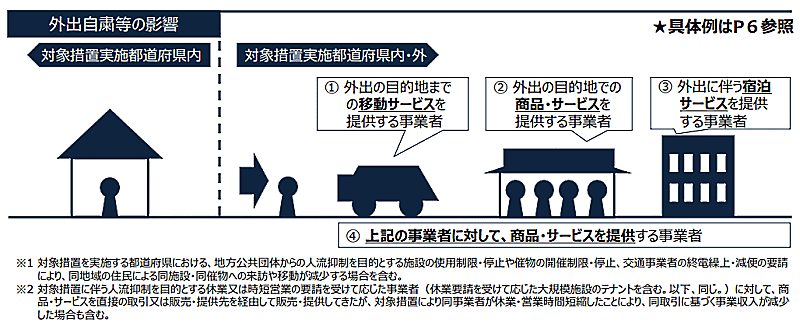 - 対象措置を実施する都道府県に所在する個人顧客と直接的な取引があることによる影響を受け、2021年の月間売上が2019年または2020年の同月比で50%以上減少していること