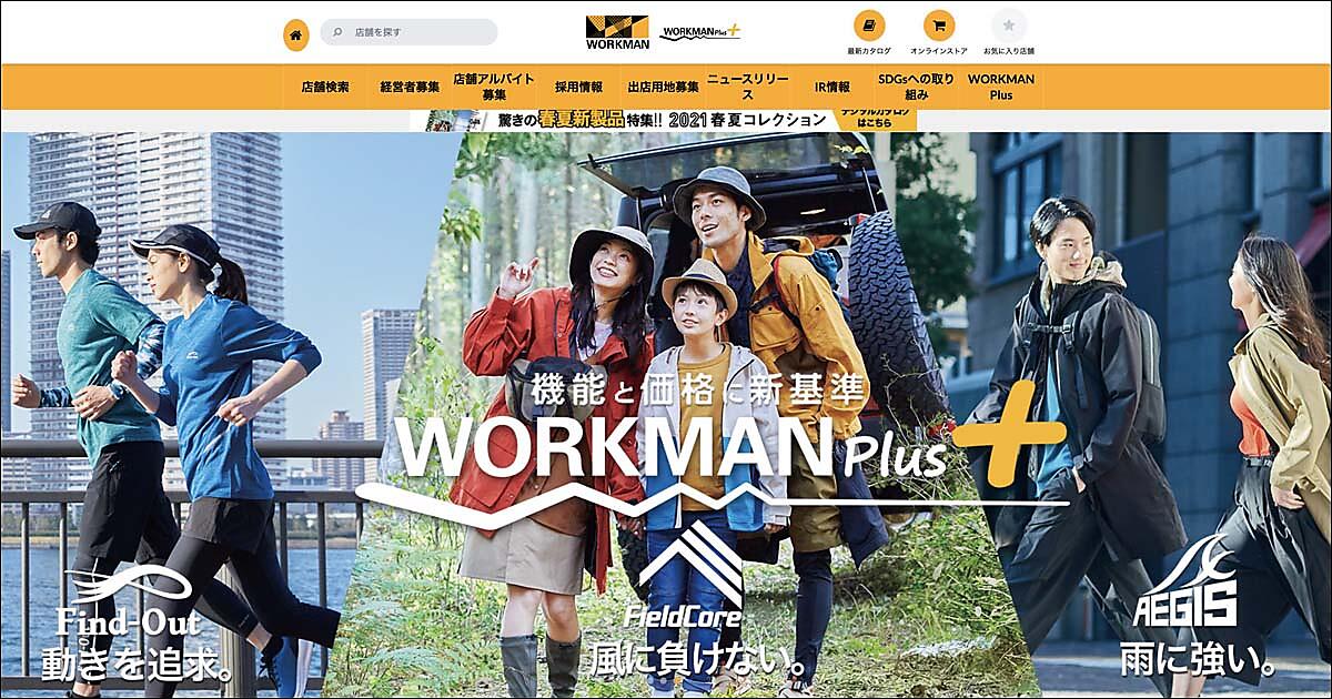 従来型店の「ワークマン」は全店舗が路面店。一方の「ワークマンプラス」1号店はショッピングセンター内に出店した。作業服は取り扱わず、「ワークマン」でもともと販売していたアウトドアウェアの製品のうち3割ほどの一般客向け製品のみを陳列。事業定義も「作業服」から「高機能ウェア」へと変更した。