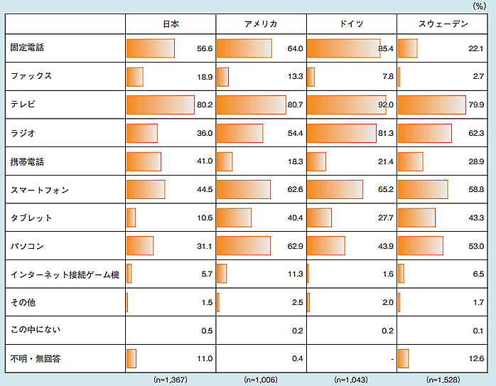利用している情報通信機器について(複数回答)、スマートフォンは44.5%。パソコンは31.1%だった。