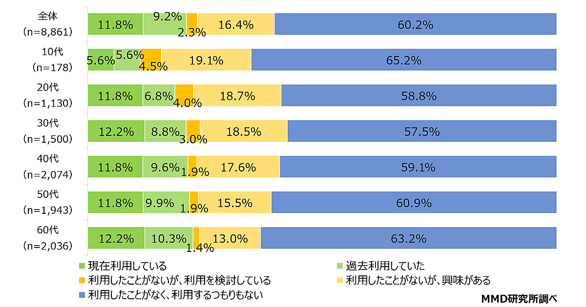 「生鮮食品のネット注文・配送」の利用経験、60代が最多