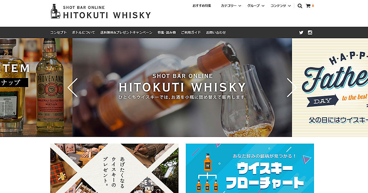 父の日など季節に合わせた提案をしている(画像は「ひとくちウイスキー」サイトからキャプチャ)