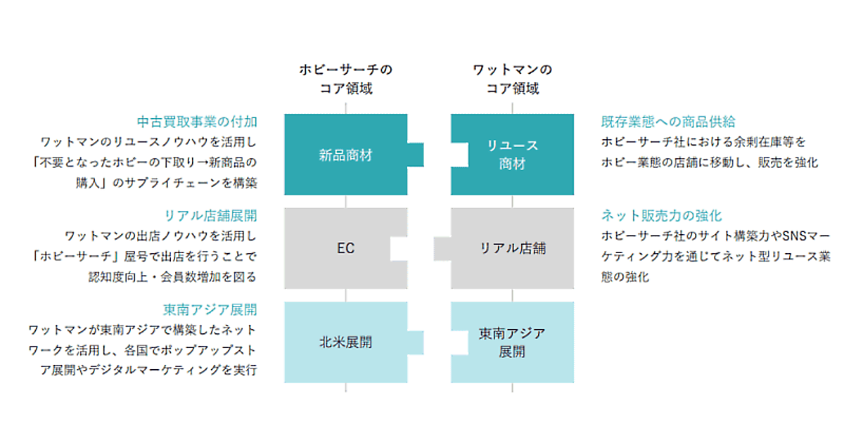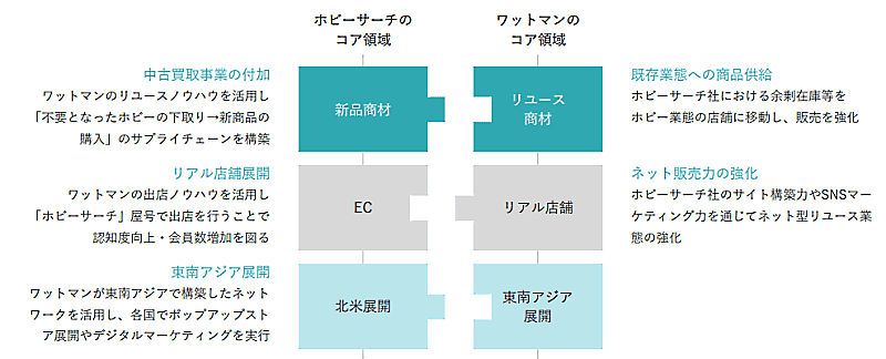 ワットマンが有するリアル店舗展開やASEAN展開のノウハウなどを活用し、中長期的に人員・技術のシナジーを発揮することで、今後グループの企業価値向上に資すると判断、ホビーサーチの株式取得を決議した。