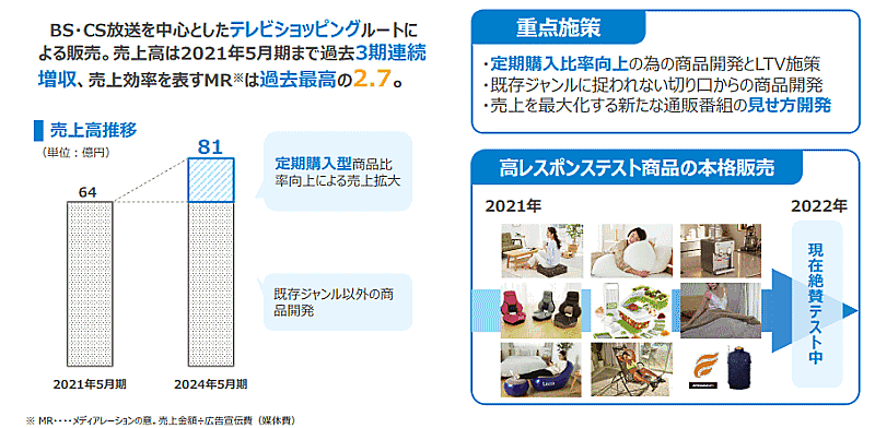 TVショッピング、EC、定期購入商品への注力、メイドインジャパンの海外展開 -