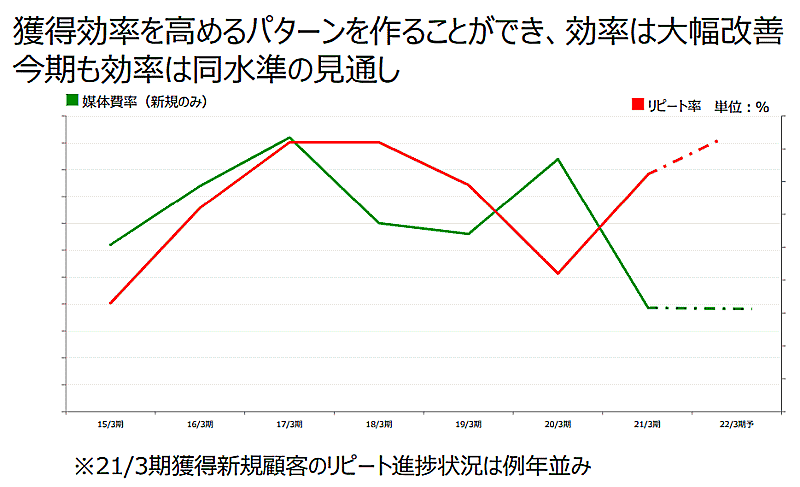 ――5月21日の決算説明会では、「前期は新規顧客がかなり増えているので、今期は顧客リストを活用することで引き続き伸びるのではないか」と予測していた。
