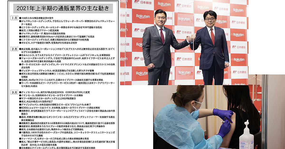 新型コロナウイルスが続いている2021年。国内でのワクチン接種が本格化したこともあり、収束に向けた希望も見られるが、都心部を中心に感染状況は一進一退を繰り返している。通販業界においては、引き続き、緊急事態宣言下での購買活動を支える社会インフラとしての役割を果たすことができた一方、行政処分などの暗い話題もいくつか見られている。今上半期において通販業界に起きた主な出来事を振り返ってみる。