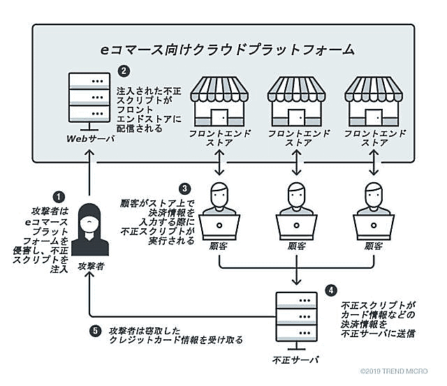 Webアプリケーションからクレジットカード情報をスキミングする他の「Magecart」攻撃と同様に設計された新しい攻撃は、多くの一般的なeコマースプラットフォームやコンテンツ管理システム(CMS)を攻撃します。その標的は、「Magento」「WordPress」「Drupal」「Shopify」「BigCommerce」「Salesforce Commerce Cloud」「WooCommerce」などです。