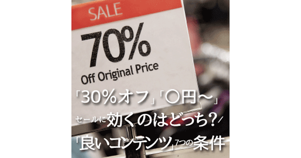 「30%オフ」「○円〜」セールに効くのはどっち?/「良いコンテンツ」7つの条件