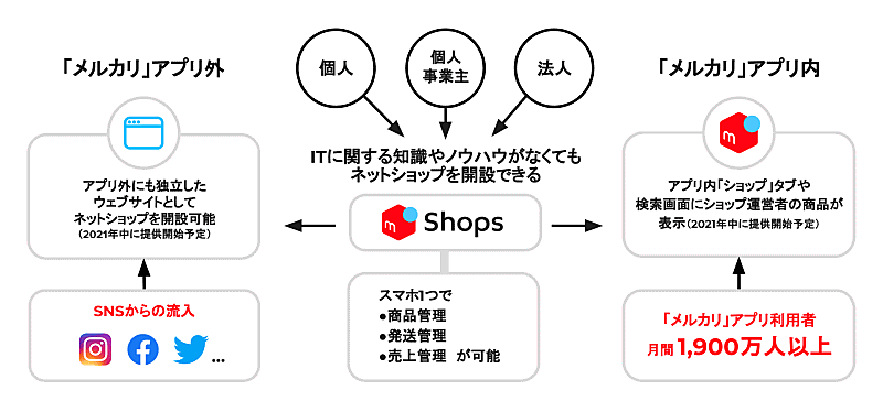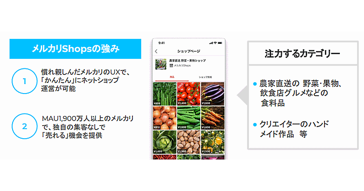 「メルカリShops」を通じて魅力的なショップ運営者が増えることにより、これまで「メルカリ」を使ったことがない顧客を含め、幅広いユーザーに「メルカリ」が利用されるきっかけになるとしている。