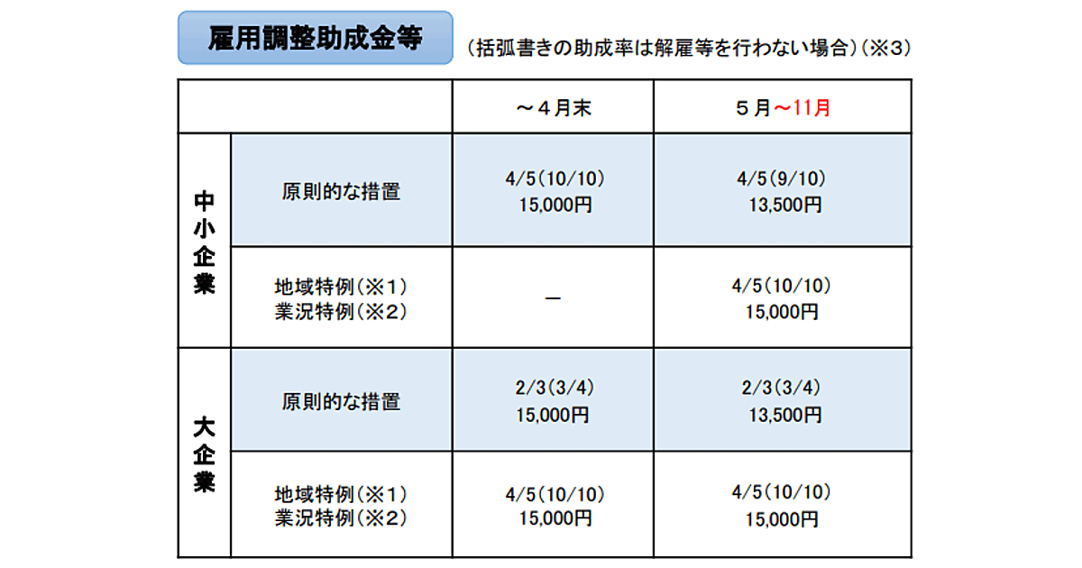 11月末まで延長する方針の「雇用調整助成金」特例措置の内容