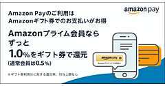 消費者は、Amazonギフト券の残高を増やす場合は現金でチャージするとAmazonポイントの付与を受け、Amazonギフト券残高を使い「Amazon Pay」で商品・サービス代金を支払えば0.5%分のギフト券の還元を受けることができる――。Amazonギフト券を軸に、Amazonは消費者への還元施策を拡充している。