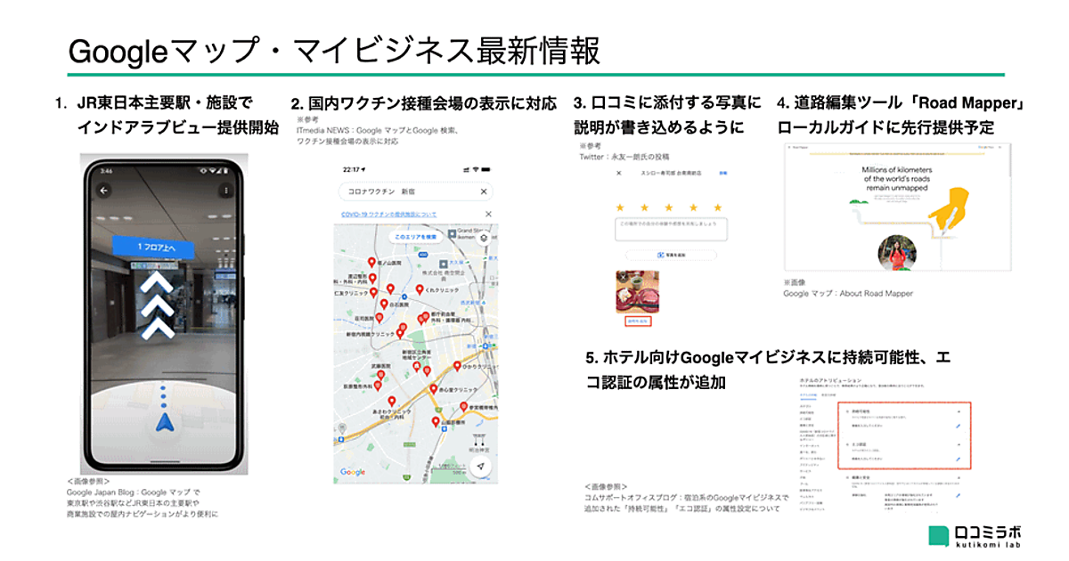 GoogleマップやGoogleマイビジネスなど、ローカルSEO(特定の場所に関連する検索(ローカル検索)が行われた際、検索結果に表示される店舗・施設情報を最適化することで、来店や予約に結びつける施策のこと。「MEO」と呼ばれることも)に関連するサービスは常にアップデートが続けられています。