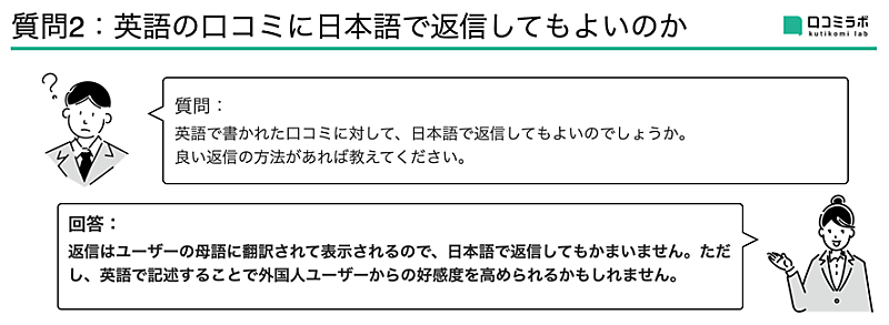 「英語の口コミに日本語で返信してもよいのか」という質問です。