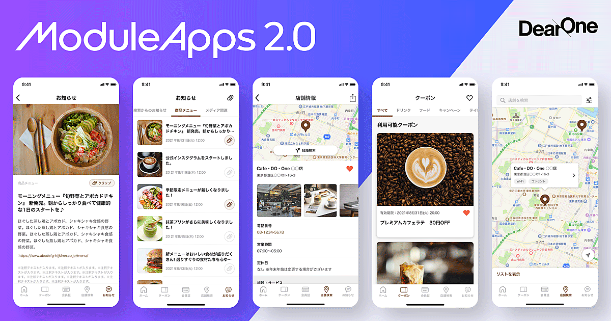 DearOne(旧ロケーションバリュー)は、機能を大幅に改善した公式アプリ開発サービス「ModuleApps2.0(モジュールアップス ニーテンゼロ)」の提供を開始した
