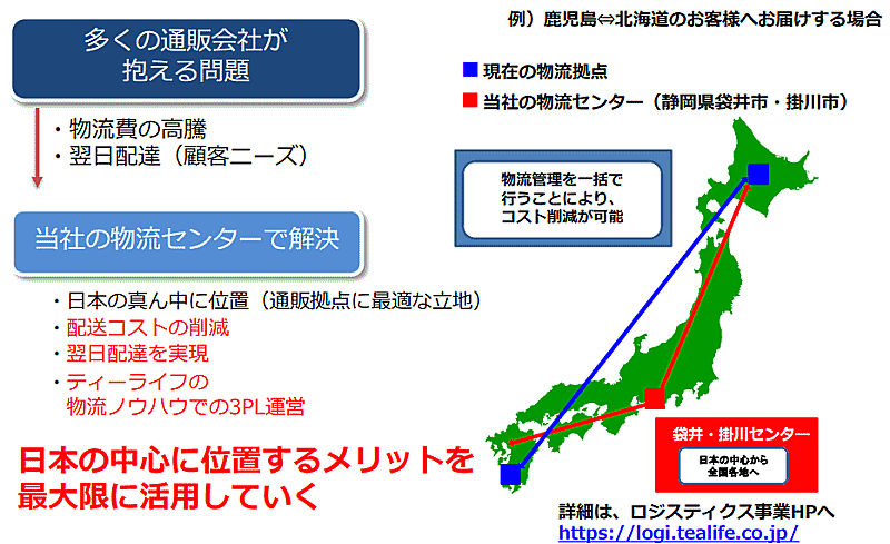 静岡・袋井にある自社の物流センターを活用した、他社の出荷業務を積極的に手がけていく。国内の中心に位置する物流拠点のメリットを生かし、配送コストの削減や翌日配達の実現、3PL事業を強化していく。